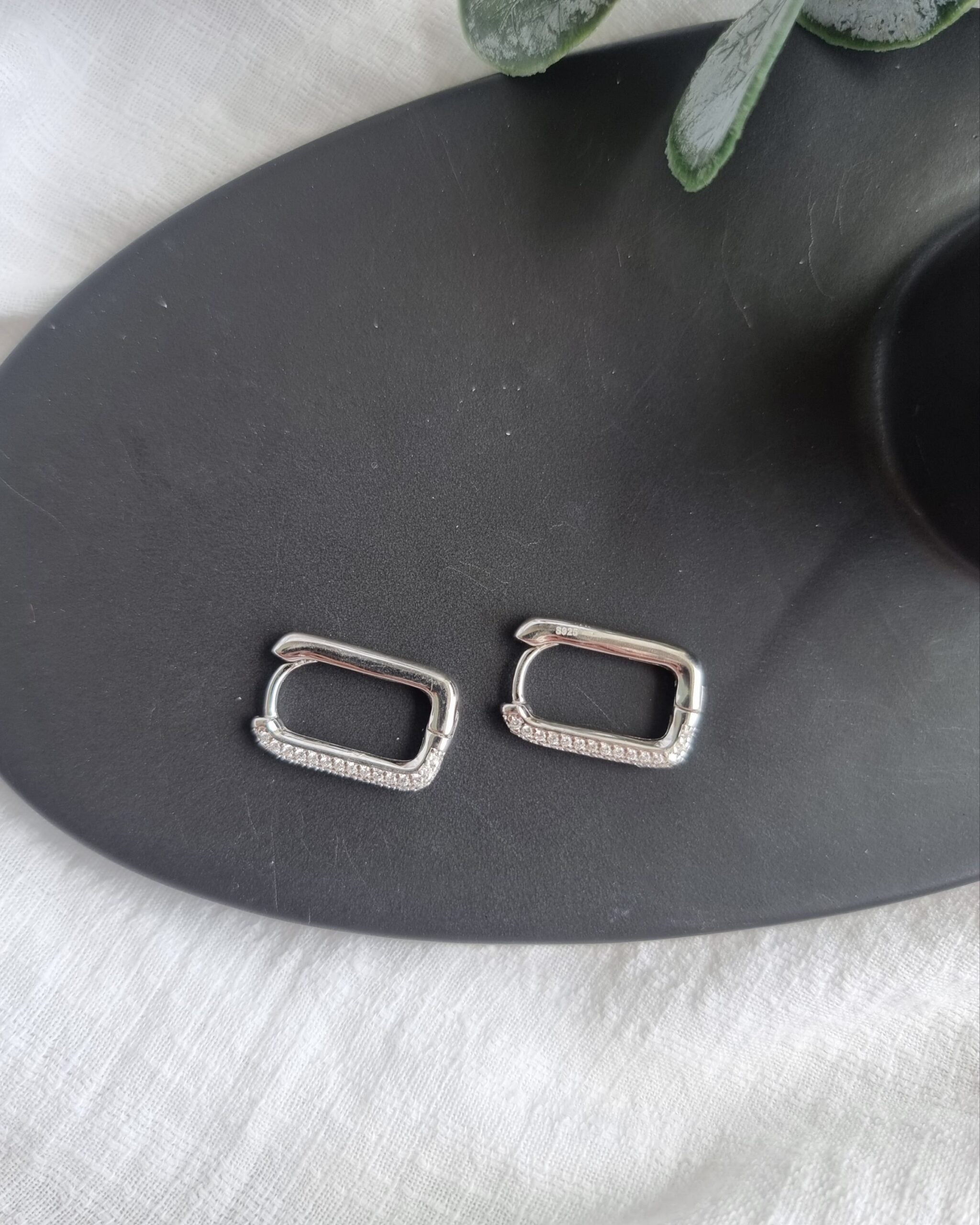 Introducing our stunning Paperclip Bling Hoop Earrings, a modern take on a classic design. Crafted from high-quality sterling silver, these earrings combine durability with a sleek, polished finish. Their unique rectangular shape sets them apart from traditional hoops, offering a fresh and contemporary look. Drawing inspiration from the minimalist elegance of a paperclip, these earrings transform this simple design into a chic and stylish accessory. The sterling silver construction ensures a radiant shine that effortlessly enhances any outfit. Adding to their allure, the sides of each hoop feature sparkling cubic zirconia stones. These meticulously set stones catch the light beautifully, creating a dazzling effect that adds a touch of glamour to your look. Moreover, the Paperclip Bling Hoop Earrings prioritize both comfort and style. The lightweight sterling silver ensures you can wear them all day without discomfort, while the secure clasp mechanism keeps them in place. Thanks to the hypoallergenic properties of sterling silver, these earrings are perfect for those with sensitive skin, allowing you to enjoy their beauty without worry. Versatile and elegant, these earrings are perfect for various occasions. Pair them with a simple blouse and jeans for a touch of everyday elegance, or wear them with a sophisticated dress for an evening out. Their contemporary design and sparkling accents make them a standout piece in any jewelry collection. Experience the perfect blend of modern design and timeless elegance with our Paperclip Bling Hoop Earrings. The rectangular shape, combined with the brilliance of cubic zirconia stones, offers a unique and captivating look. These earrings not only enhance your style but also reflect your refined taste and love for distinctive accessories. Elevate your jewelry collection with the Paperclip Bling Hoop Earrings. Their chic design, combined with the sparkle of cubic zirconia, ensures they. Will become a cherished addition to your wardrobe. Embrace the elegance and sophistication of these exceptional earrings and make a stylish statement wherever you go.