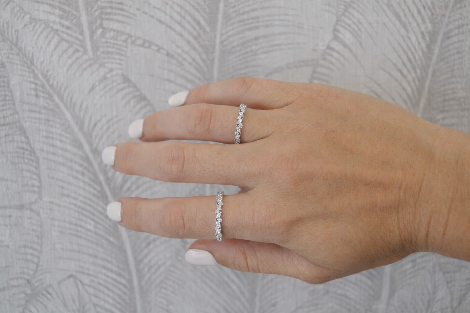 The Abigail Sterling Silver Ring is a stunning piece of jewelry designed by Mark of A. It features a gorgeous arrangement of marquise and round cubic stones set in sterling silver. The marquise stones are strategically placed to form a delicate and intricate pattern. They catch the light beautifully, creating a dazzling display that's sure to turn heads. In addition to the marquise stones, the ring also includes round cubic stones that add a subtle touch of sparkle. These stones are set in a way that complements the marquise stones, creating a cohesive and sophisticated look. Crafted with precision and care, the Abigail Ring is made using only the highest quality materials. The sterling silver band is smooth and comfortable to wear, while the cubic stones are securely set in place to ensure long-lasting durability. This ring is perfect for those who want to add a touch of elegance and glamour to their style. Whether you're dressing up for a special occasion or just looking to add some sparkle to your everyday wear, the Abigail Ring is sure to make a statement. Mark of A is known for their exquisite craftsmanship and attention to detail. With the Abigail Ring, you can expect nothing less than the best. From the carefully chosen stones to the flawless design, this ring is a true work of art. Whether you're treating yourself or buying a gift for someone special, the Abigail Sterling Silver Ring is an excellent choice. It comes in a range of sizes, making it easy to find the perfect fit. Plus, it's packaged in a beautiful box, making it an ideal present for any occasion. In conclusion, the Abigail Sterling Silver Ring is a stunning piece of jewelry that's sure to make a statement. With its intricate design, high-quality materials, and expert craftsmanship, this ring is a true masterpiece. Choose the Abigail Ring and add a touch of glamour and sophistication to your wardrobe.