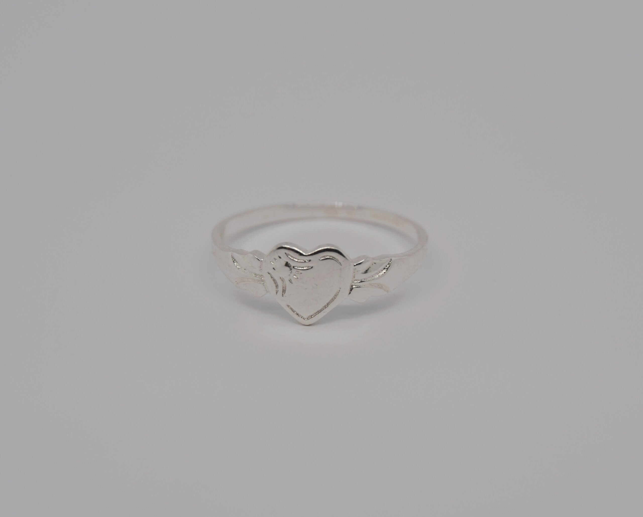 Introducing the Silver Heart Signet Ring, a timeless piece of jewelry crafted from premium sterling silver. This elegant ring features a heart-shaped signet design, blending classic sophistication with a touch of romantic charm. The polished surface and robust construction promise both beauty and durability, making it a perfect addition to any jewelry collection. One of the most appealing aspects of the Silver Heart Signet Ring is the option for personalized engraving. This feature transforms the ring from a mere accessory into a cherished keepsake. Engraving a loved one’s initials, a special date, or a meaningful symbol adds a deeply personal touch. Moreover, this customization makes it an ideal gift for commemorating special occasions such as anniversaries, birthdays, or milestones. It offers a way to carry a sentimental reminder close to your heart. Crafted from sterling silver, the ring ensures long-lasting beauty. Its sleek, polished finish catches the light beautifully, adding elegance to any outfit. Additionally, the substantial weight and comfortable fit make it suitable for everyday wear, ensuring it remains a favorite accessory for years to come. Whether paired with casual wear or formal attire, this ring effortlessly enhances your style. Furthermore, the heart-shaped design adds a romantic and whimsical element, making it a perfect symbol of love and affection. This design, combined with the option for personalization, allows each wearer to create a piece uniquely their own. Signet rings have a rich history, symbolizing identity and authority. Today, the Silver Heart Signet Ring carries on this legacy, representing individuality and personal expression. In conclusion, the ring offers more than just a piece of jewelry; it combines timeless elegance, romantic charm, and personal significance. Crafted from high-quality sterling silver and customizable with engraving, it serves as both a beautiful accessory and a meaningful keepsake. Whether worn as a daily reminder of love or given as a thoughtful gift, the Silver Heart Signet Ring perfectly expresses style and sentiment.