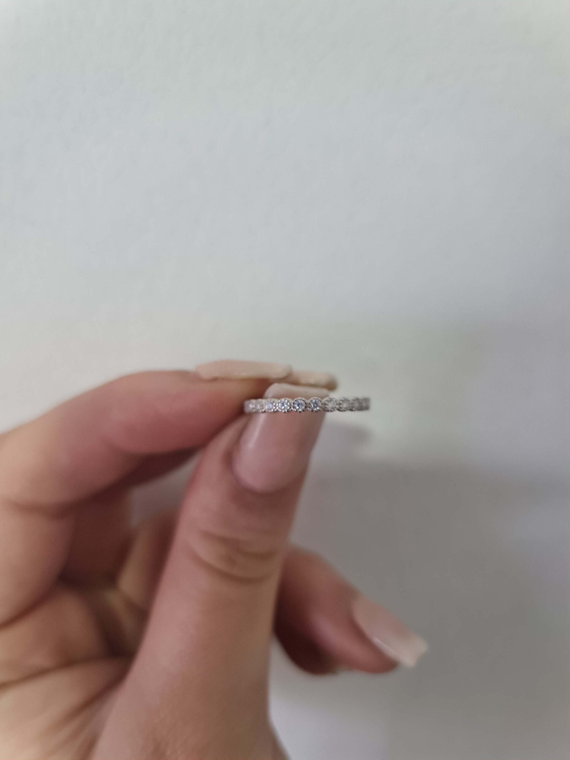 The Vada Sterling silver ring from Mark of A is a truly breathtaking piece of jewellery that exudes timeless elegance and sophistication. Crafted with precision and attention to detail from high-quality sterling silver, this ring is a stunning and durable piece that will be treasured for years to come. What makes the Vada ring truly special is the arrangement of round brilliant cubic zirconia's set across the band, creating a dazzling display of sparkle and shine. The stones are expertly cut and set, creating a beautiful and eye-catching pattern that adds a touch of elegance to any outfit. Moreover, the combination of sterling silver and round brilliant cubic zirconia's creates a beautiful contrast, making this ring a true work of art. The stunning design and exceptional craftsmanship of the Vada Sterling silver ring from Mark of A ensure that it is sure to be a treasured addition to any jewellery collection. In addition, this ring is a versatile piece of jewellery that can be worn with a variety of different outfits and for any occasion, from everyday wear to special events. Its timeless elegance and sophisticated design make it a perfect choice for anyone who appreciates beautiful and high-quality jewellery. Overall, the Vada Sterling silver ring from Mark of A is an exceptional piece of jewellery that combines exceptional craftsmanship, stunning design, and versatile style, making it a perfect addition to any jewellery collection.